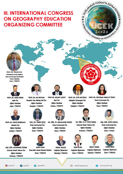 The main theme of the 3rd International Congress for Geography Education (UCEK 2021), as determined by the organizing committee, is “Geographical Education for the Life”. The purpose is to find solutions to problems determined in a scientific integrity.